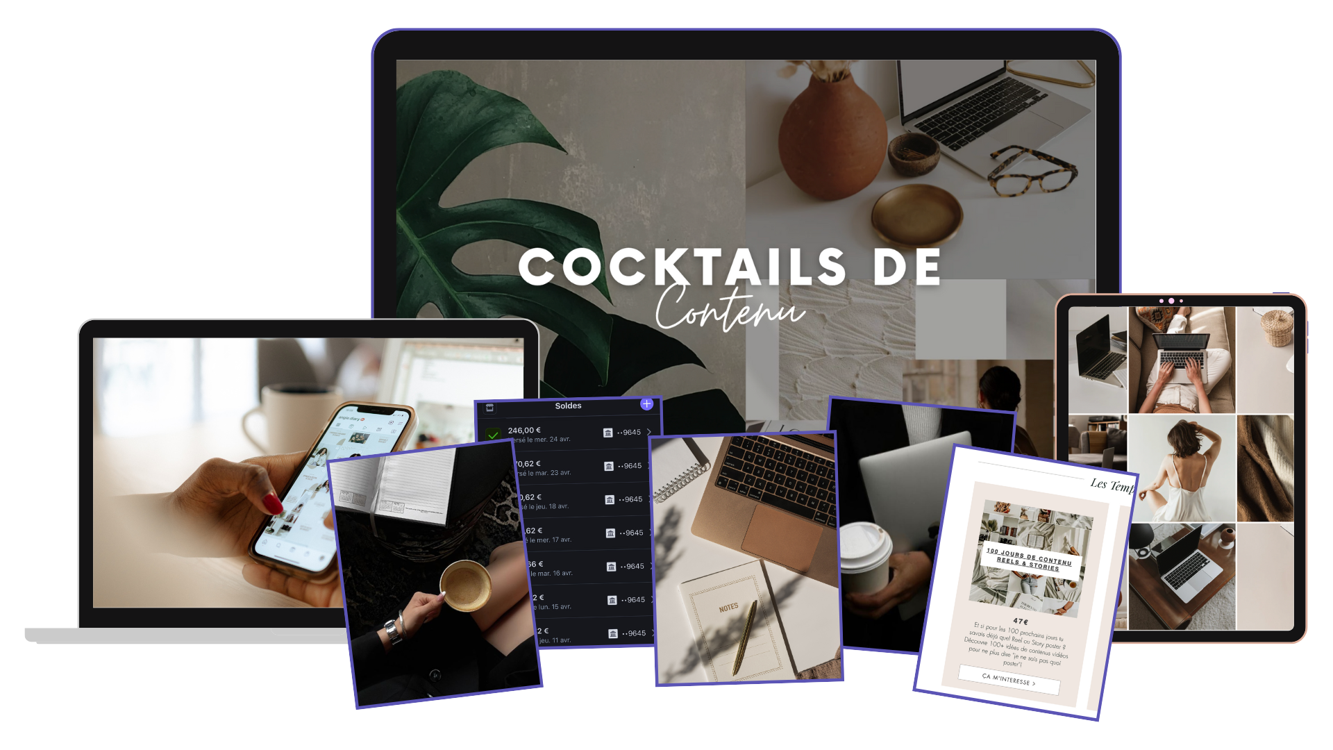 Reels, Posts et Stories, tu auras accès à des scripts, des accroches, des exemples de texte ainsi que des templates pour créer ton contenu durant tout un mois. Cheers ! 🥂